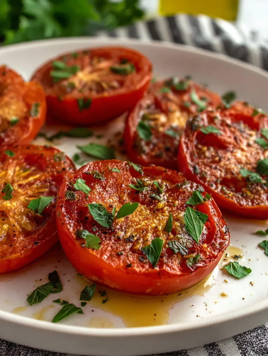 - In a bowl, toss tomatoes with olive oil, salt, pepper, garlic, and Italian herbs until evenly coated.