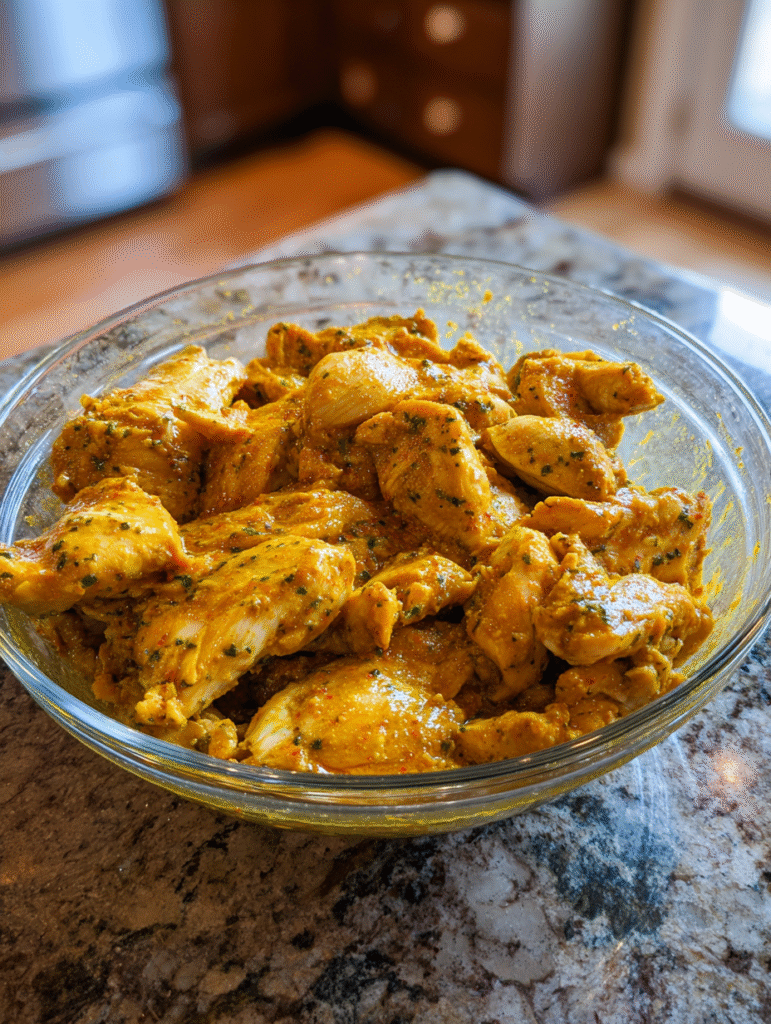 - Marinate the Chicken: In a large bowl, combine yogurt, lemon juice, garam masala, cumin, turmeric, coriander, chili powder, garlic, and ginger. Coat chicken thoroughly and let marinate for at least 30 minutes or overnight for richer flavor.