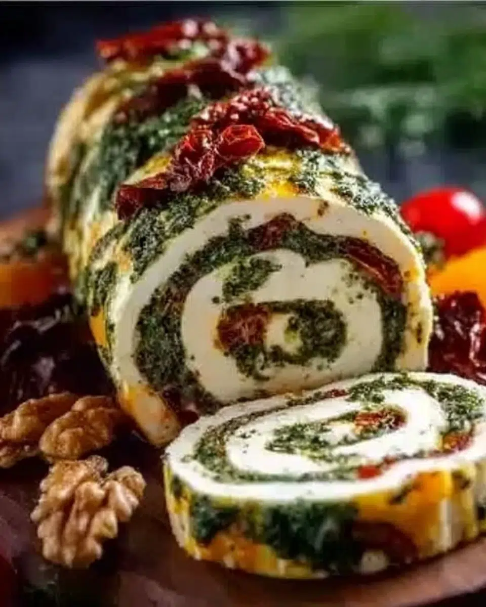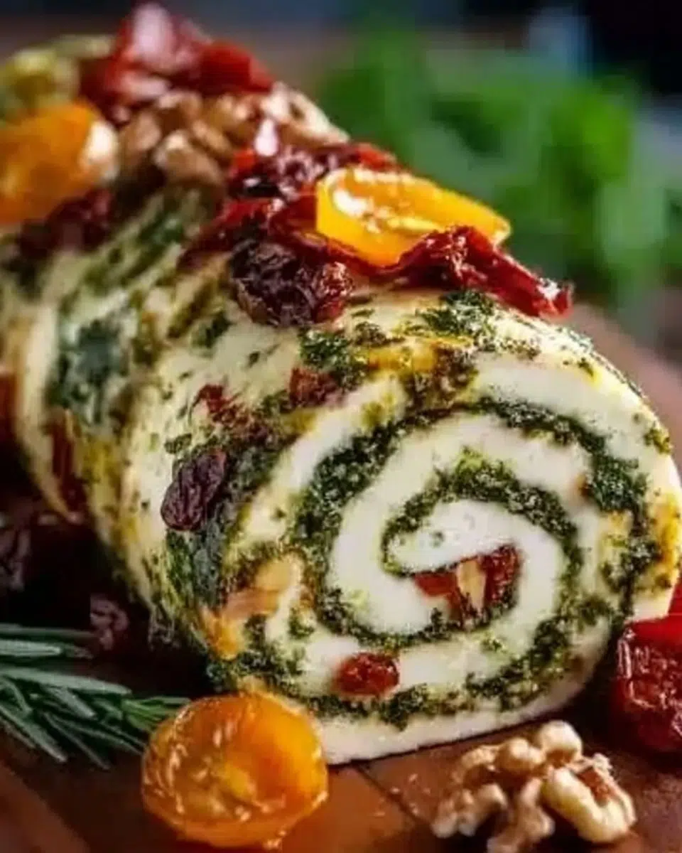 Festive Cheese Log with Pesto and Sun Dried Tomatoes Recipe