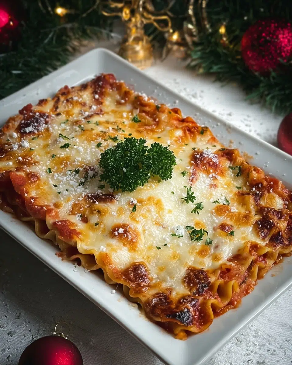 Keywords: Cheesy Christmas Lasagna, holiday lasagna recipe, festive pasta, recipes for dinner