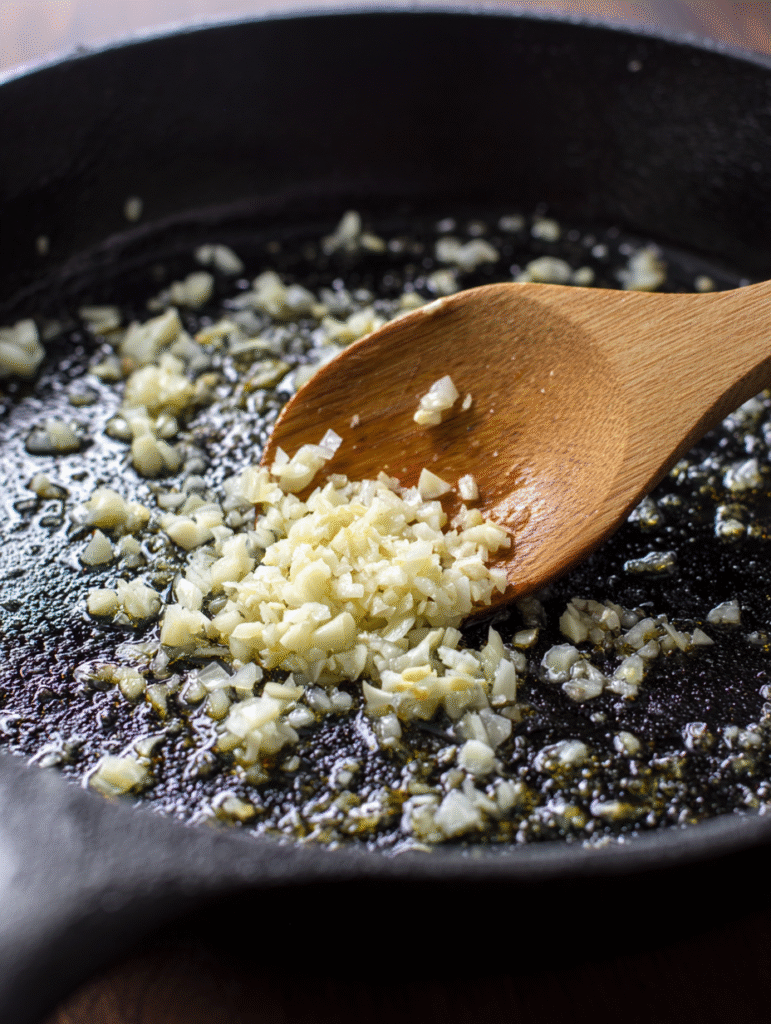 Step 3: Add minced garlic to the skillet and cook for another 30 seconds, stirring constantly to prevent burning.