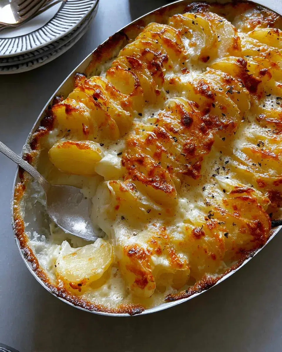 For the best results, slice potatoes evenly and allow the dish to rest before serving so the layers hold together perfectly.