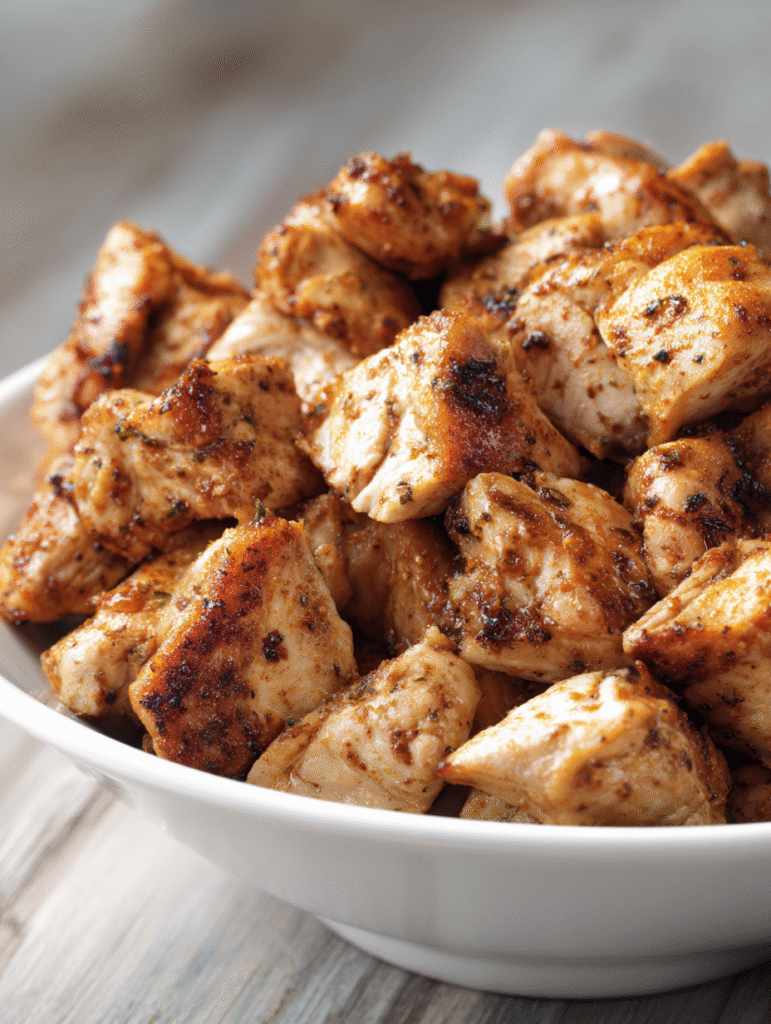 - Cook the Chicken: Cut chicken thighs into bite-sized pieces. Season with salt, cayenne, garlic, onion, and cumin. Heat olive oil and butter in a skillet over medium-high heat, then cook the chicken for 6–8 minutes until golden and cooked through. Set aside to cool.