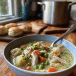 This hearty soup delivers exactly that—tender chicken, vibrant vegetables, and a rich, creamy broth that captures every beloved flavor of classic chicken pot pie in spoon-friendly form.