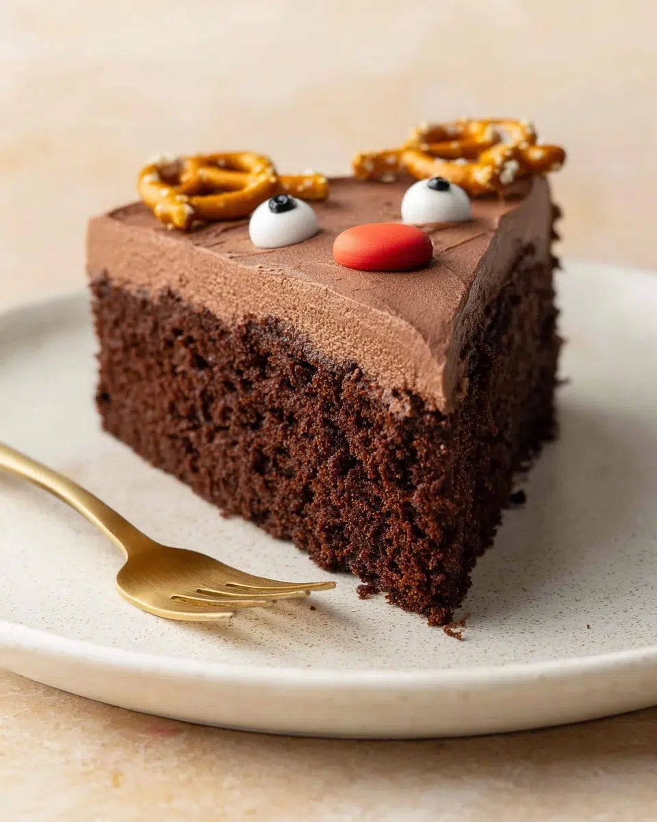 This reindeer cake tutorial delivers maximum impact with minimal effort. You’ll love how the orange zest brightens the rich cocoa flavors, creating a sophisticated taste that appeals to both kids and adults. The decorating process becomes a fun family activity, letting little hands help place those googly eyes and red Smartie noses. Explore more family-friendly dinner recipes here to complete your holiday menu planning.