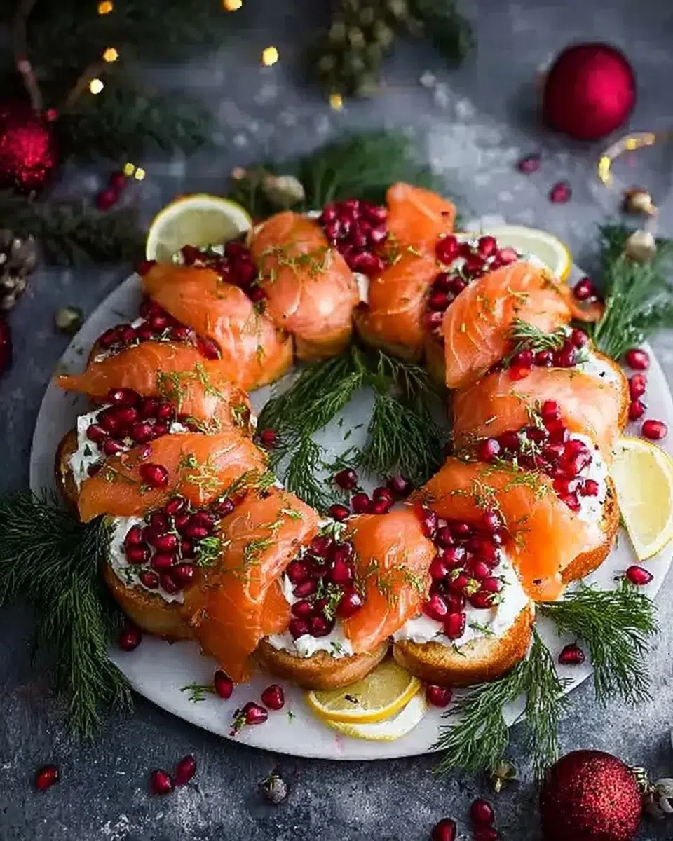 This Christmas Salmon Bruschetta Wreath is a festive appetizer made with smoked salmon, creamy herb cheese, and crisp baguette rounds. It’s a show-stopping holiday recipe that’s perfect for entertaining and easy to prepare. A must-try for recipes for dinner or holiday food lovers.