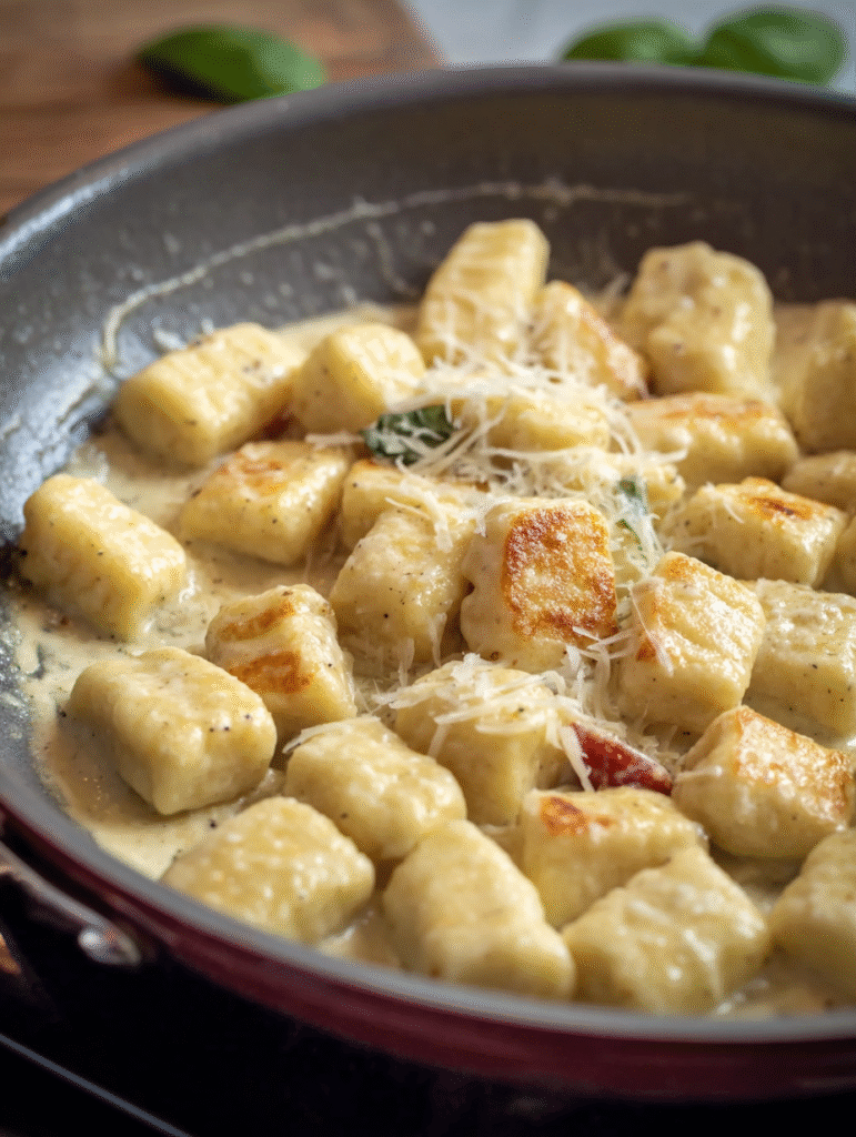 - Add the gnocchi directly into the skillet without pre-cooking. Let it simmer for 8–10 minutes, stirring occasionally until the gnocchi are tender and sauce thickens.