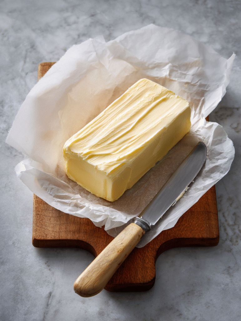 - Pound cold butter between parchment into a 6×8-inch rectangle about 1/4-inch thick. Keep chilled.