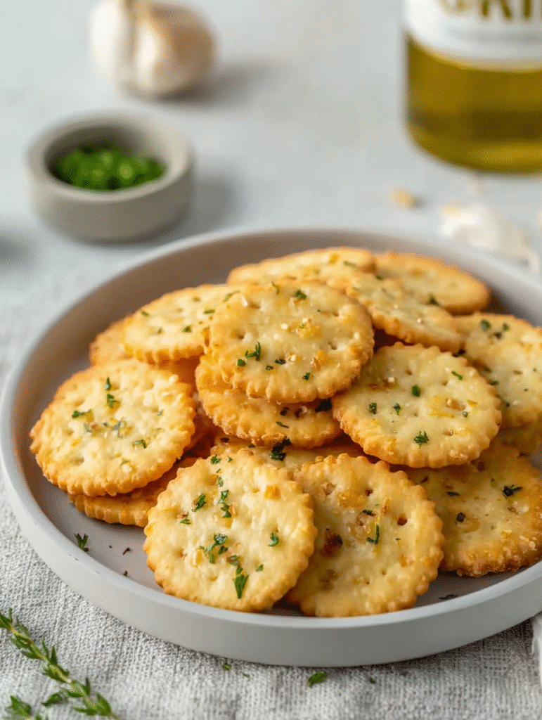 Buttery Ritz crackers transformed into crispy, savory garlic-infused bites. Ready in just 15 minutes, these snacks are perfect for parties or quick cravings.
