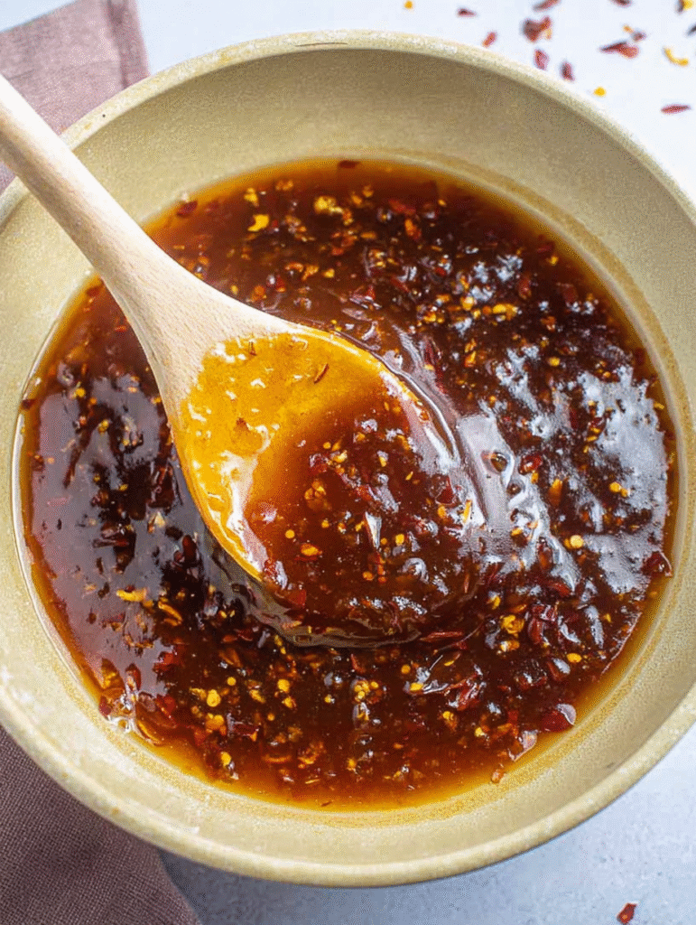 - In a saucepan, mix sugar, water, vinegar, salt, soy sauce, and chili flakes. Bring to a boil, then simmer for 8–10 minutes until slightly thickened.