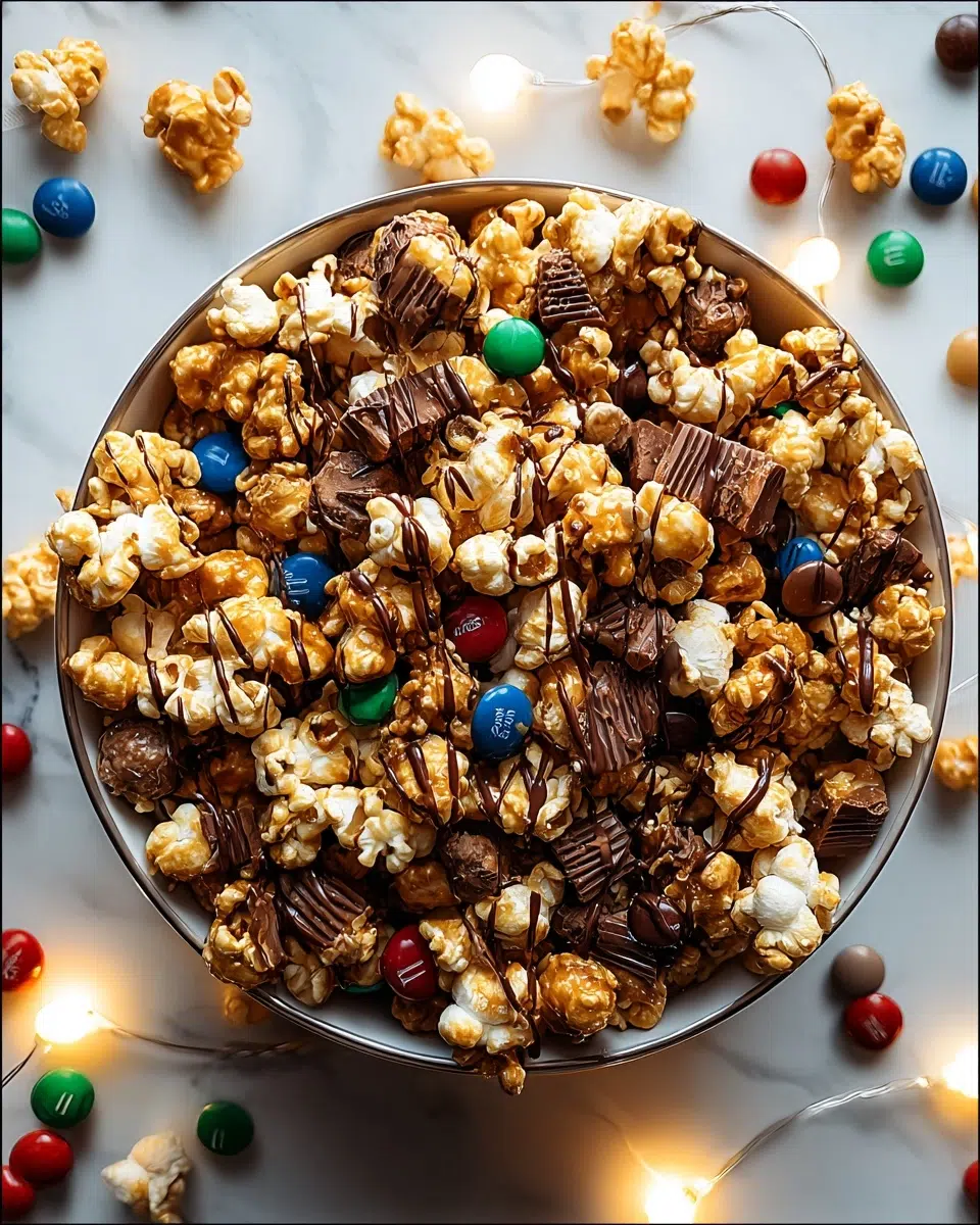 A festive and irresistible caramel corn mix that blends sweet caramel, crunchy nuts, melted chocolate, and holiday candy. Perfect for recipes quick and easy, holiday party snacks, and anyone searching for recipes easy dessert ideas that double as homemade gifts.
