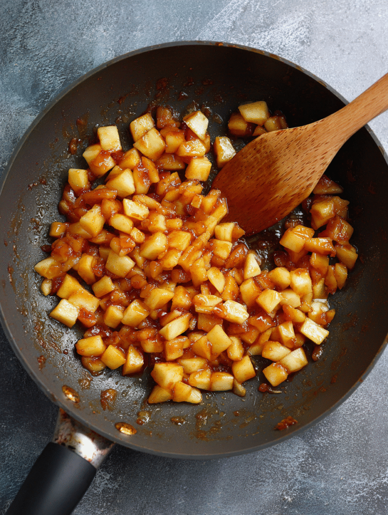 - To make the bourbon apple filling, melt butter in a skillet over medium heat. Add diced apples, brown sugar, cinnamon, and vanilla bean paste. Cook for 8–10 minutes until apples soften. Add bourbon and cook 2–3 minutes more until the liquid reduces. Cool completely.