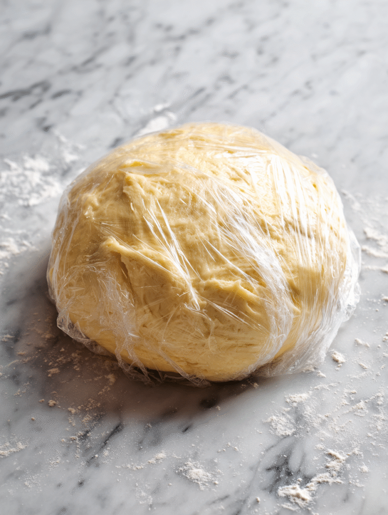 Wrap dough in plastic wrap and refrigerate for 30 minutes. Chilled dough is easier to handle and maintains shape during baking.