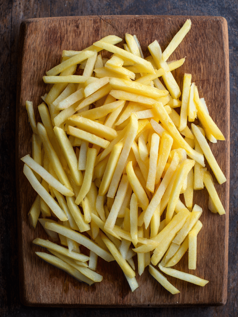 - 3 large russet potatoes (about 2 lbs), cut into 1/2-inch strips
