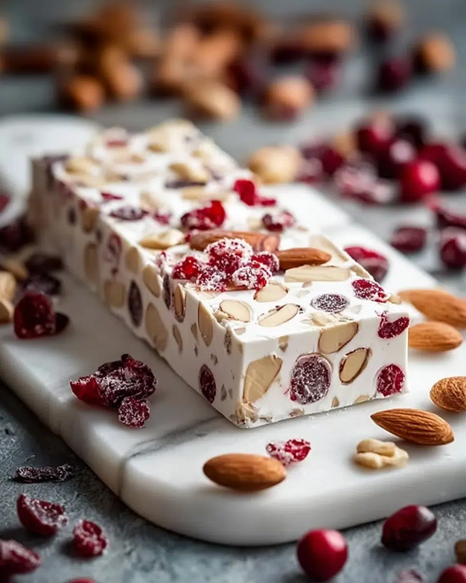 These Marshmallow Nougat Bars are a chewy, sweet homemade treat filled with almonds, cranberries, and strawberries. They come together fast and look beautiful on any dessert table. Ideal for readers searching for recipes easy, recipes dessert, or recipes cookies that require no baking and deliver big flavor.