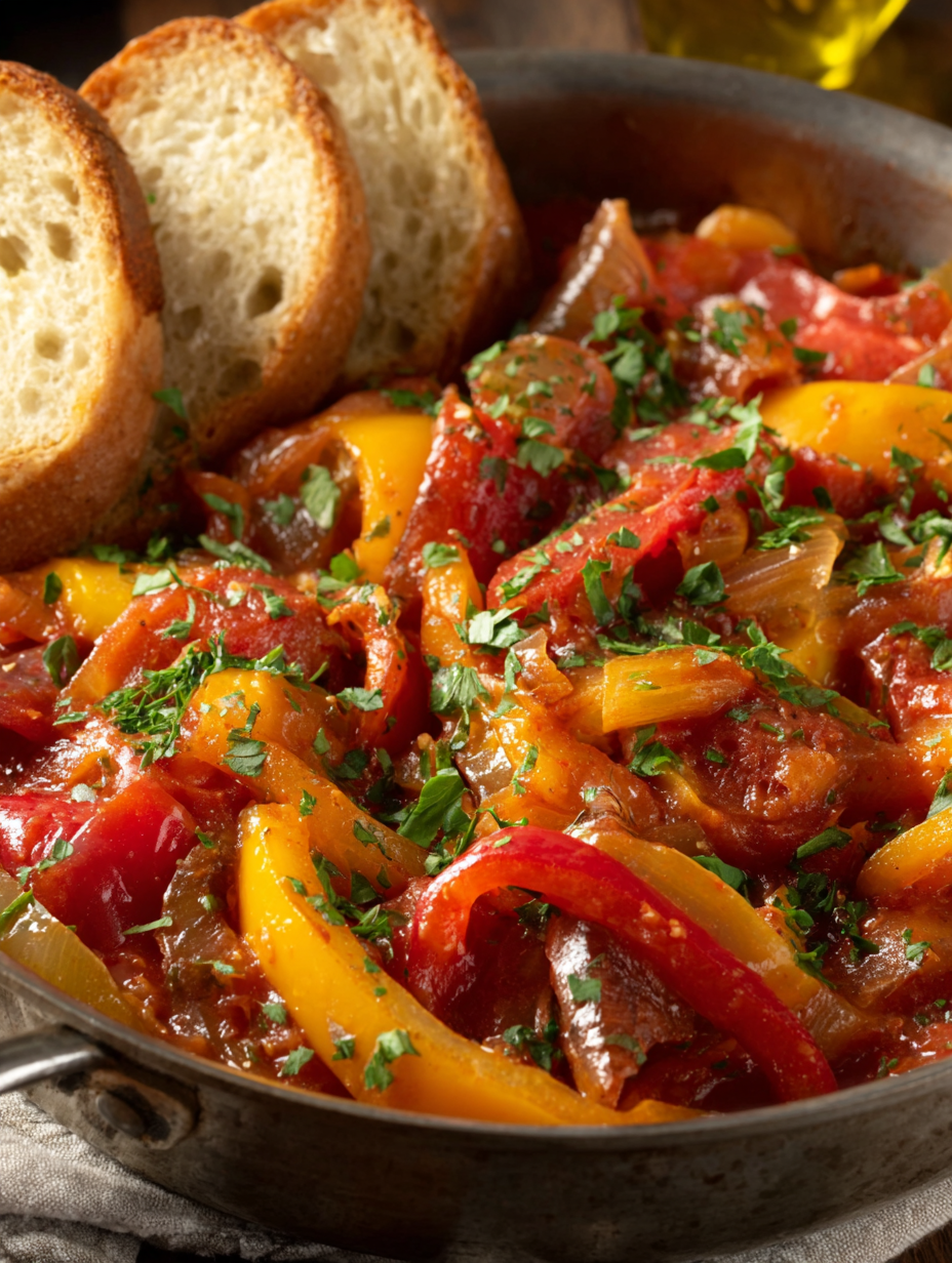 This classic Italian Peperonata is a rustic pepper stew made with sweet bell peppers, onions, garlic, and tomatoes—simple, healthy, and full of Mediterranean flavor.