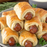 Flaky crescent dough wrapped around juicy cocktail sausages, baked until golden brown and served with your favorite dipping sauces. A simple yet irresistible classic appetizer that’s perfect for parties, holidays, or family snacking.