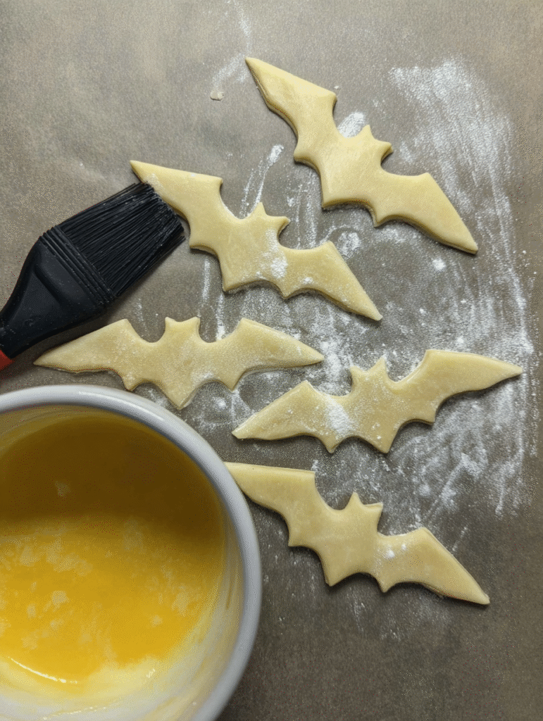 - Use a bat-shaped cookie cutter or homemade template to cut out bat shapes from the dough.