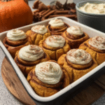 These festive pumpkin-shaped cinnamon rolls combine the cozy flavors of cinnamon, brown sugar, and spice with an adorable seasonal design. Soft, fluffy, and picture-perfect, they’re a fall baking masterpiece that delights both taste buds and eyes.