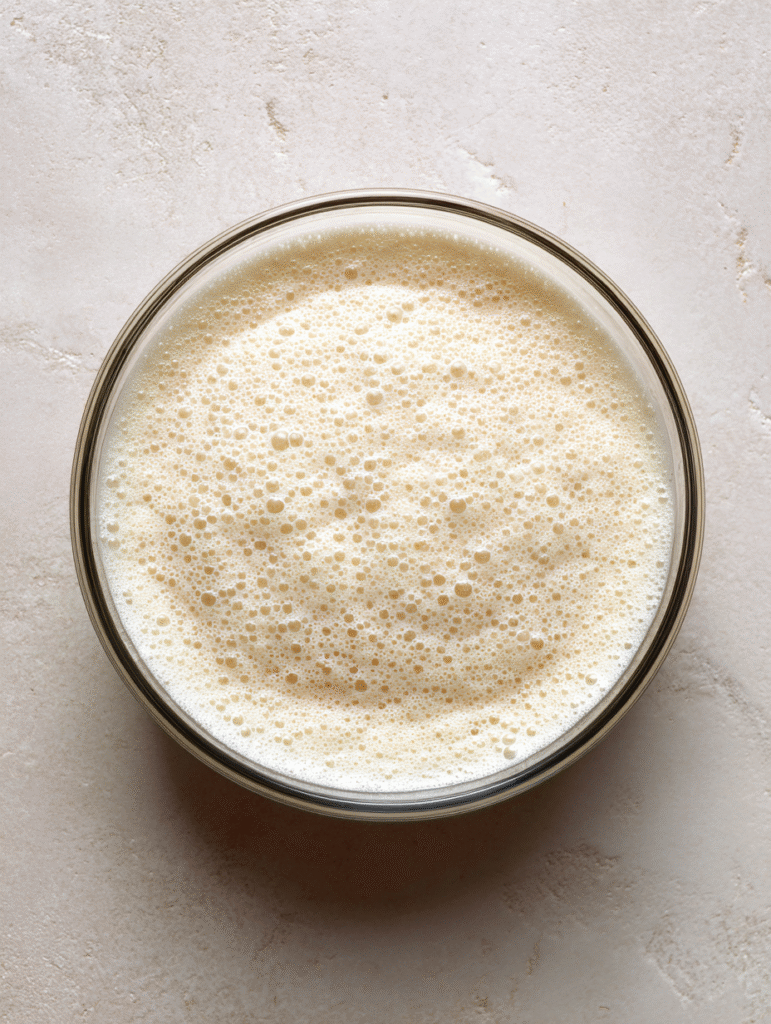 - In a small bowl, mix warm water, a pinch of sugar, and yeast. Let sit 5–8 minutes until foamy.