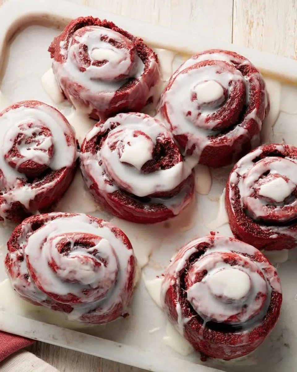 A: Red Velvet Cinnamon Rolls are done when the tops are golden brown and the internal temperature reaches 190°F. They should spring back lightly when touched and pull away slightly from the edges of the pan.