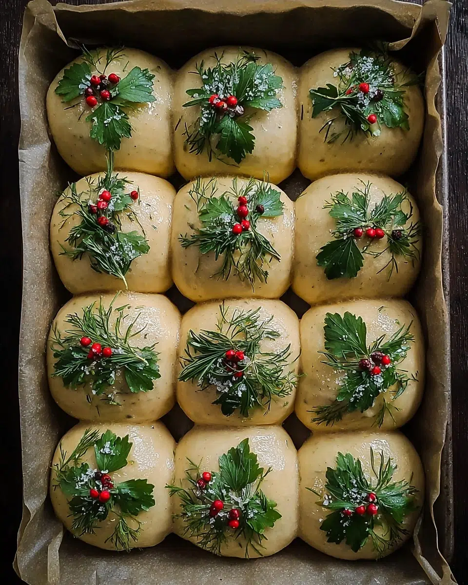 Holiday Feast Centerpiece: These Rosemary Honey Butter Dinner Rolls make an elegant addition to Thanksgiving or Christmas dinner tables. Serve them warm alongside roasted turkey, glazed ham, or prime rib. The herb-infused rolls complement rich gravies and cranberry sauce beautifully.