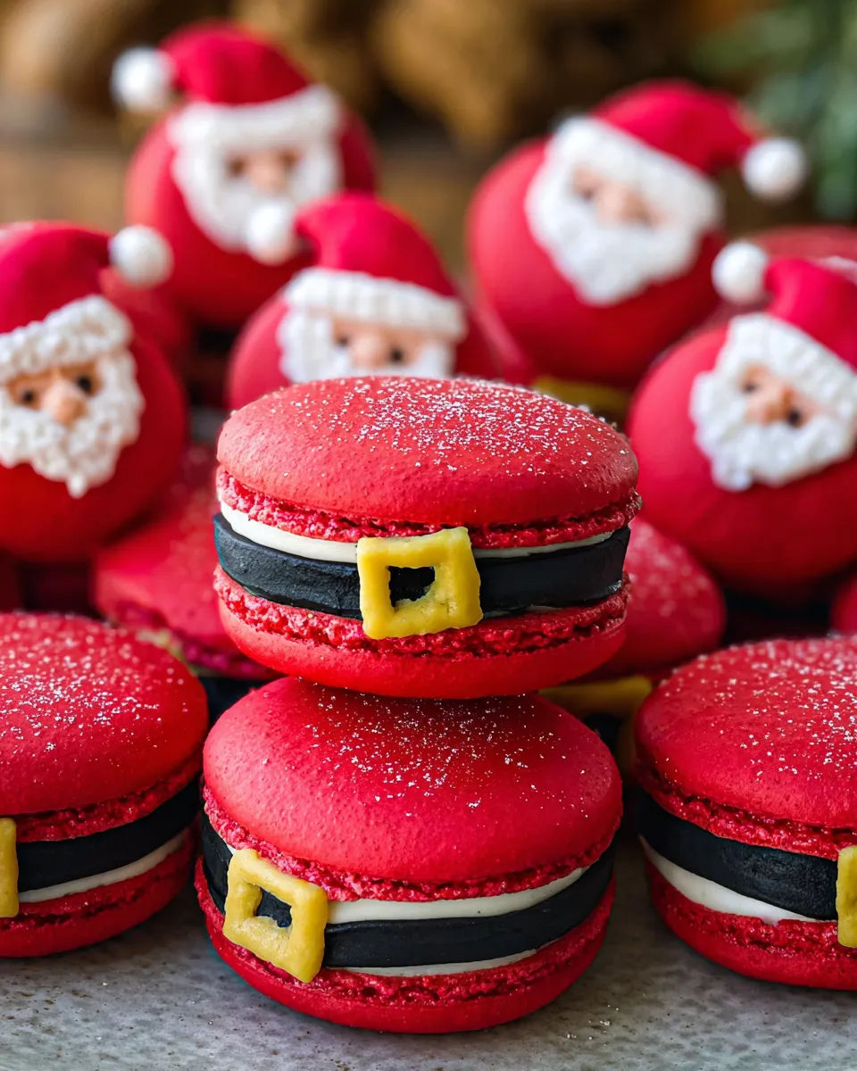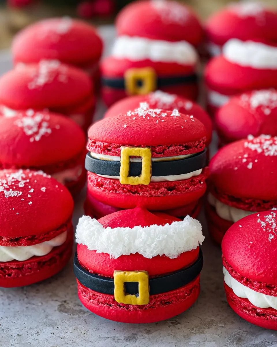 Keywords: holiday macarons, santa cookies, recipes dessert, recipes baking, recipes cookies