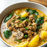 This savory ground chicken soup is creamy, hearty, and full of flavor. A one-pot recipe made with ground chicken, baby potatoes, and spinach—ready in under an hour. Perfect for recipes ground chicken, recipes soup, and recipes quick and easy dinners.
