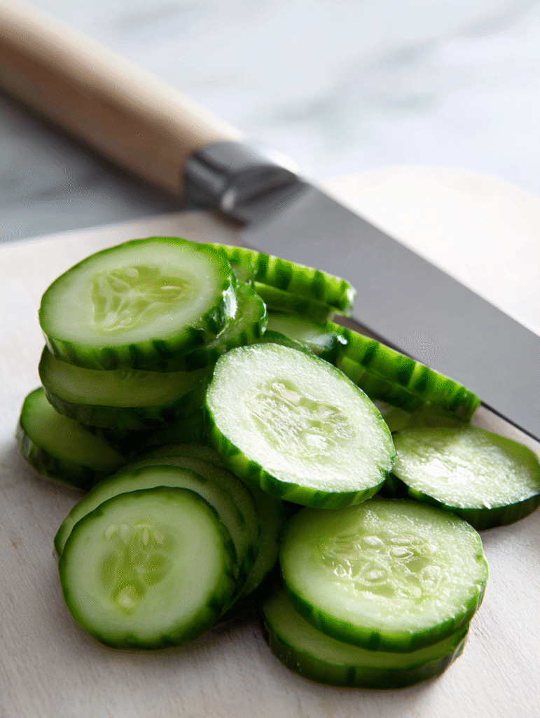 1. Slice cucumbers into 1/2-inch rounds and pat dry with paper towels.