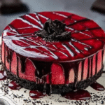 This Vampire Bite Red Velvet Cheesecake is a chillingly delicious Halloween dessert that combines creamy cheesecake layers with rich red velvet cake and dramatic raspberry syrup drips. A spooky, crowd-pleasing treat perfect for parties or a festive night in. Ideal for fans of recipes dessert, recipes quick, and food recipes easy.